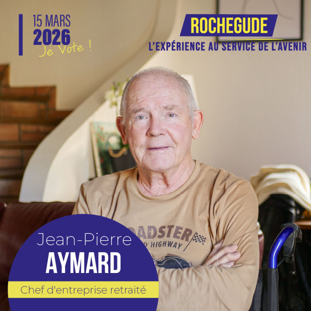 Je m’appelle Jean‑Pierre AYMARD, né le 19 janvier 1953, marié, père de trois enfants et heureux grand-père de quatre petits-enfants, Rochegudien de longue date et aujourd’hui retraité en semi‑activité.